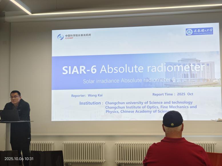 本次比對期間,長春光機所王凱高級工程師在研討會中做了題為SIAR-6 Absolute Radiometer的學術(shù)報告,向各國的參會嘉賓介紹了長春光機所最新一代的太陽輻射計以及相關實驗室和外場測試結(jié)果。來自西班牙能源、環(huán)境與技術(shù)研究中心、荷蘭Kipp & Zonen公司、埃及氣象局、古巴氣象局的相關科研人員對長春光機所研制的太陽絕對輻射計給予了高度評價并表達了強烈的合作意愿。