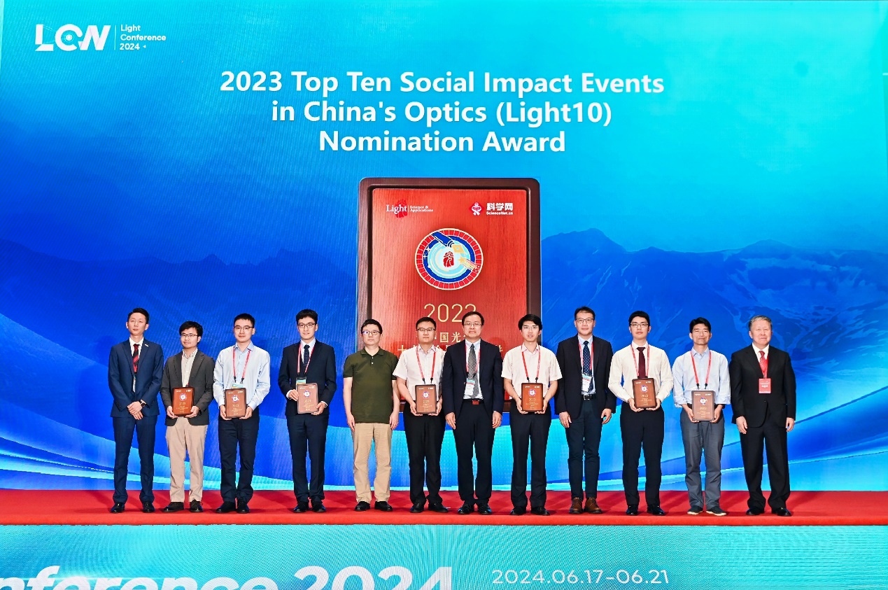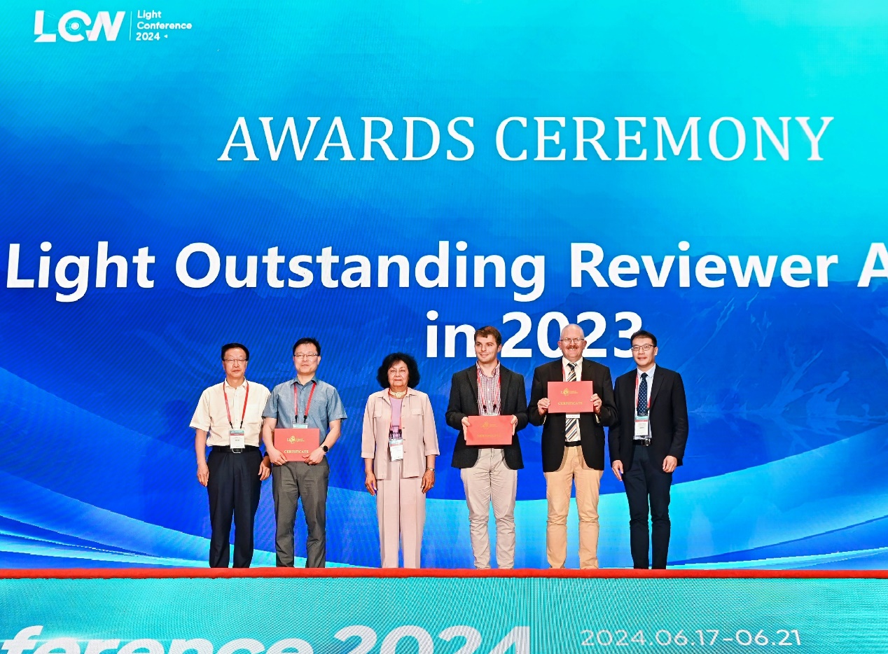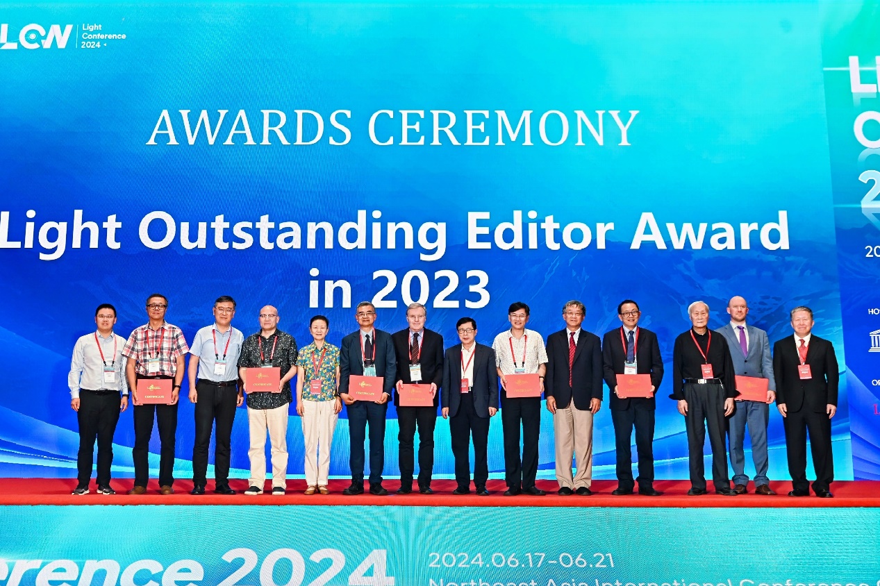 大會開幕式舉行了2023中國光學十大社會影響力事件(Light10)頒獎典禮,Light 2023年度優秀編委、優秀審稿人、優秀論文頒獎典禮。原科技部副部長、Light創刊主編曹健林,中國工程院院士、長春光機所所長張學軍,中國科學院長春分院分黨組書記、院長、長春光機所黨委書記金宏,中國科學報社副社長劉英楠,長沙麓邦光電科技有限公司銷售總監莫忠為17位到場的2023年度Light10提名獎與Light10獲獎團隊代表頒獎。長春光機所王家騏院士,Light創刊主編曹健林,長春光機所王立軍院士,中國光學學會理事長、中國人民解放軍總醫院顧瑛院士,東北師范大學劉益春院士,長春光機所所長張學軍院士,長春光機所黨委書記金宏,Light共主編、美國羅切斯特大學張希成教授,復旦大學副校長周磊教授,Light共主編、北京大學肖云峰教授,歐洲科學院院士、歐洲科學與藝術院院士、東南大學首席教授李全,美國西北大學講席教授、大會共主席Manijeh Razeghi,英國牛津大學Martin Booth教授分別為到場的7位優秀編委、3位優秀審稿人、8位優秀論文獲獎者頒獎。