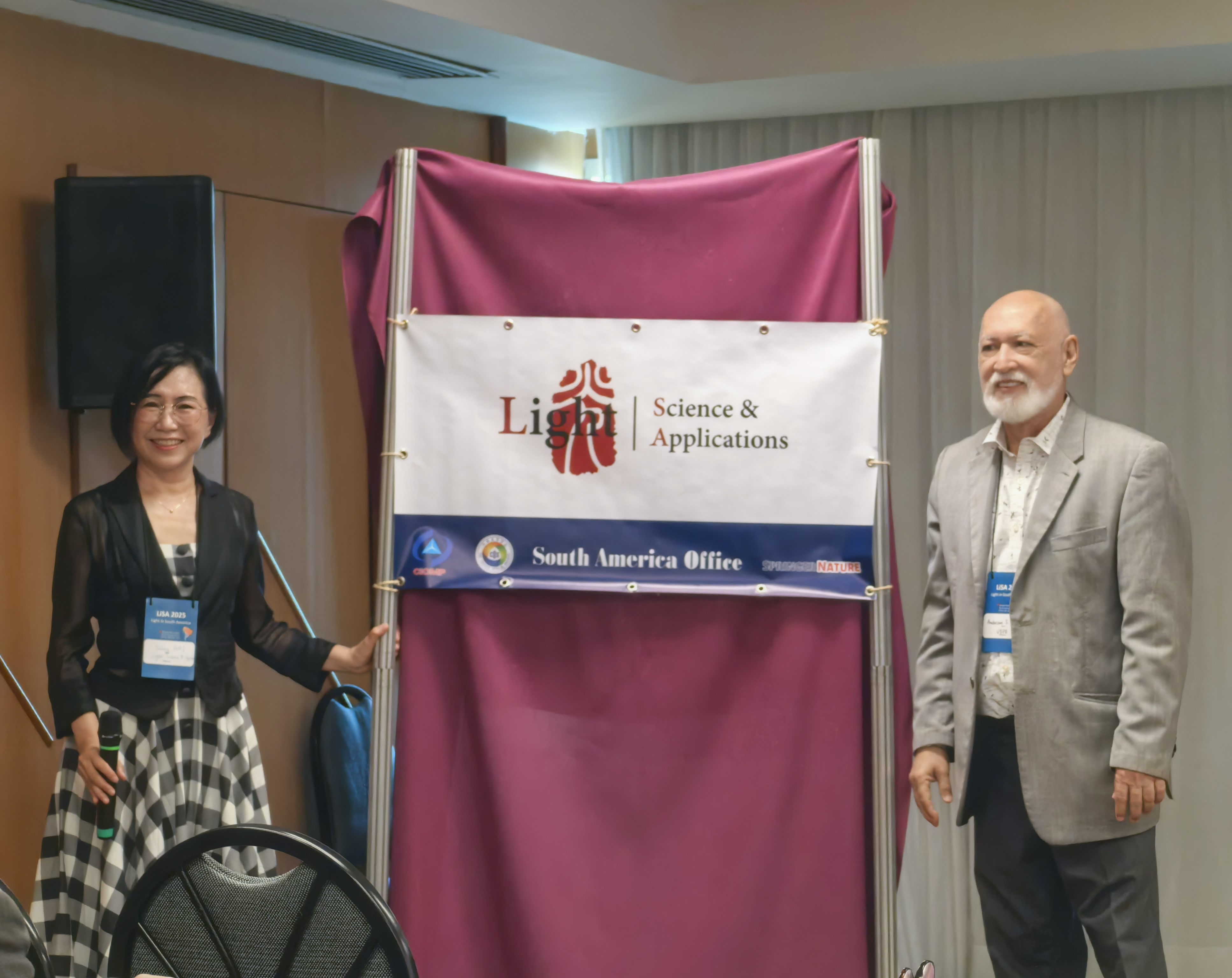 大會主席、巴西科學院院士、巴西科技部十年科研戰略規劃牽頭人,中國科學院長春光學精密機械與物理研究所副總師、《Light: Science & Applications》期刊執行主編白雨虹等專家出席會議并發言。會議期間舉辦了“Light南美辦公室”揭幕儀式,戈麥斯院士與白雨虹研究員共同為辦公室揭牌,戈麥斯院士受聘擔任辦公室負責人。Light國際品牌刊群已在全球設立27個區域辦公室。